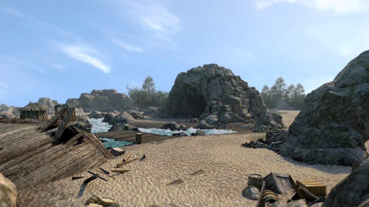 Environment art did a great job with the render, and then the effects guys came in and really just made the place come to life. Once the waves were in I tentatively asked for floating seaweed, thinking that it would never happen, and they got that working too! It was one of the first proof-of-concept areas for more involved effects work, and once people saw the results it kicked off a bunch of cool ideas in other areas.Developer commentary by Olivia Veras