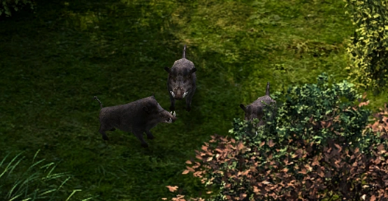 Wild boars are considered a nuisance and danger in the areas that most colonists settle in. Aggressive and fearless, boars have killed many human and elven children as well as fully-grown orlans. Packs of boars can be a threat to any traveler or explorer. They are notoriously difficult to put down, but their tusks are valued by traders and enchanters.