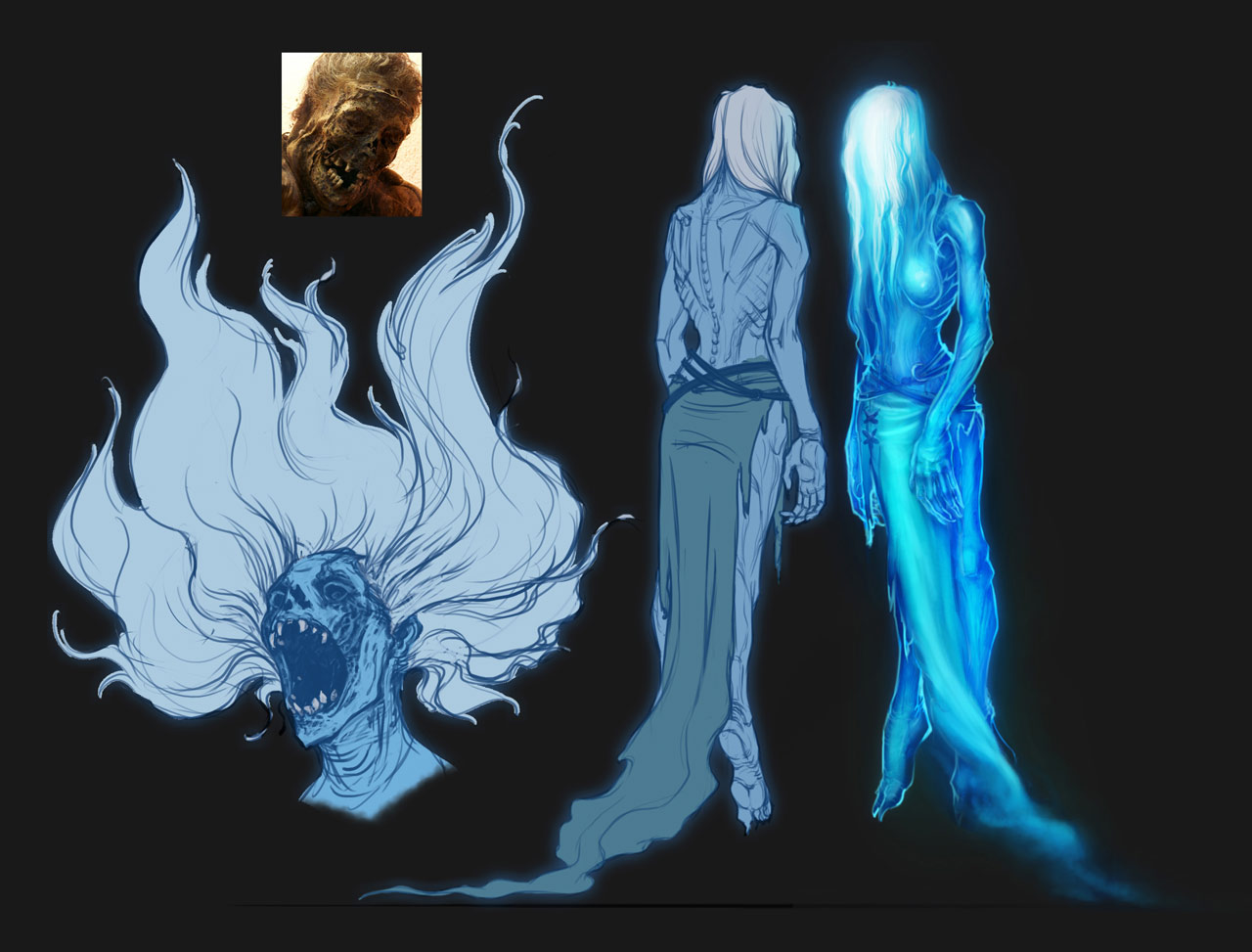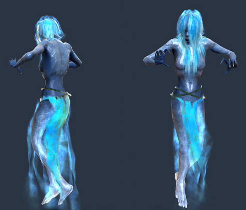 Cean Gŵla are violent and confused spirits that have been unable or unwilling to move beyond the Shroud. More specifically, these are the spirits of women who die under particularly tragic or traumatic circumstances, hence the name "cean gŵla," which translates to "blood mother." The popular image of the cean gŵla as the spirit of a jilted lover has changed in recent years, as the effects of Waidwen's Legacy have become more widely known. With so many Hollowborn arising and a similarly steep rise in cean gŵla sightings, many assume these spirits are linked to mothers who have died in childbirth. In reality, the Cean Gŵla manifest just as readily from the spirits of women who perished in violent crimes or accidents, or those who led particularly violent lives.