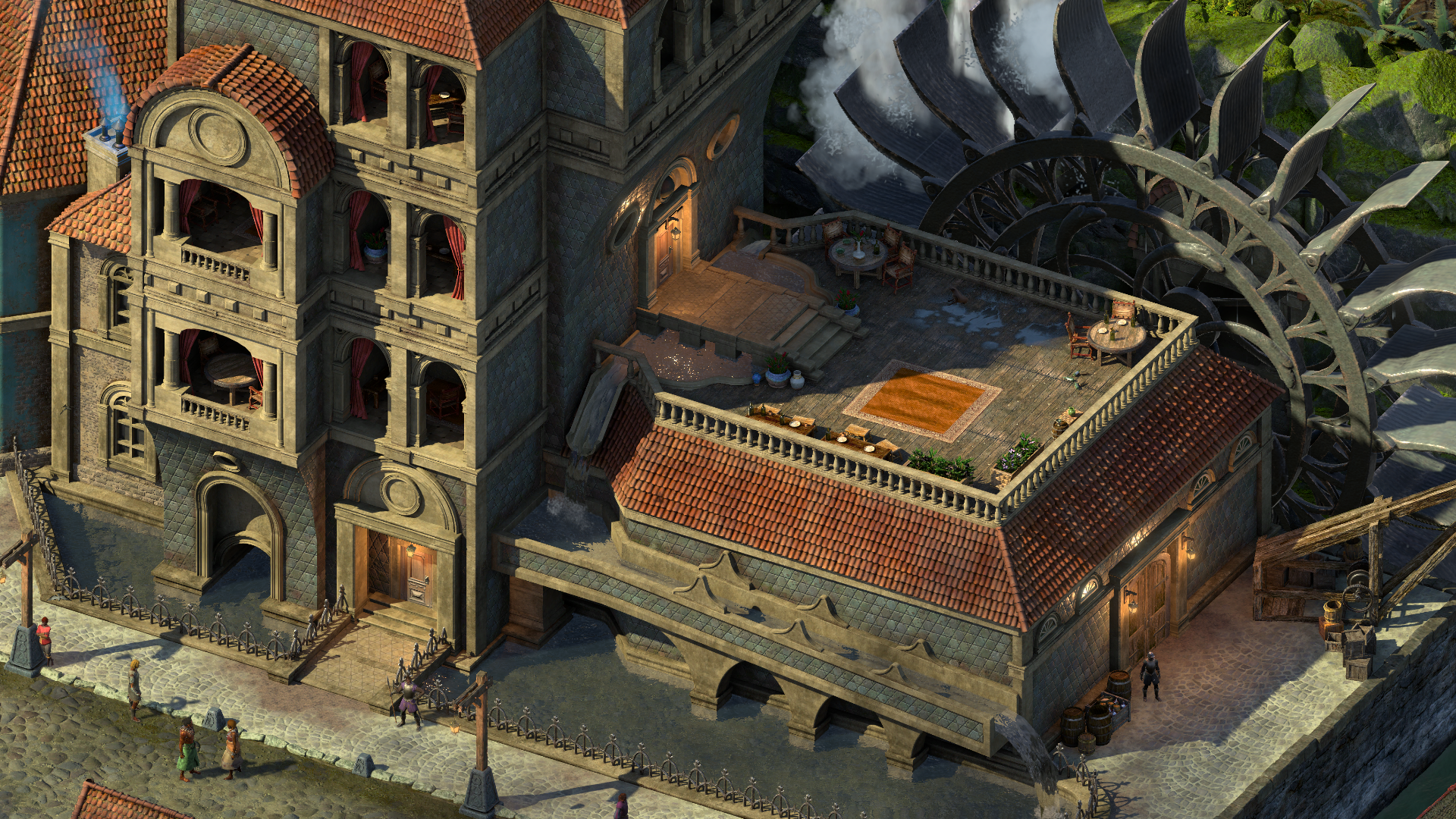 This newly constructed building makes use of the local waterfall to power the massive grindstones that process luminous adra into powder that can be exported to overseas markets. The whole operation is overseen by Cortina.