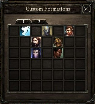 A key element of the classic party-based tactical combat is the use of party formations. In Pillars of Eternity you can arrange your party, including animal companions, in a number of set formations. You can also construct your own formations if you want to get fancy. When moving companions, you have the ability to rotate formations for more precise positioning. (Right-click, Hold, and Drag).[5]