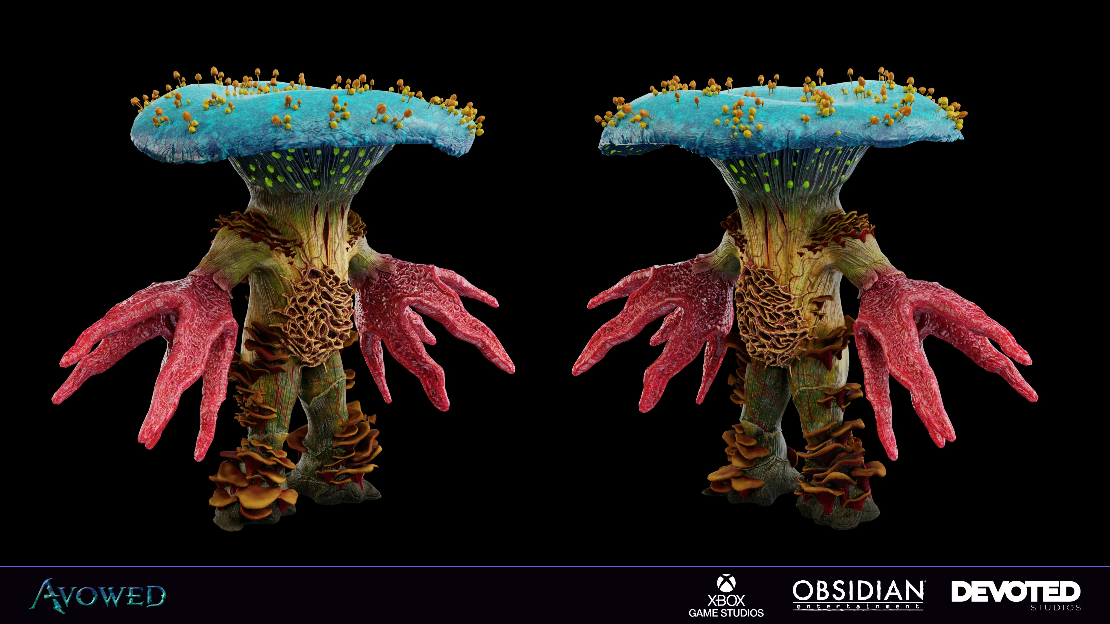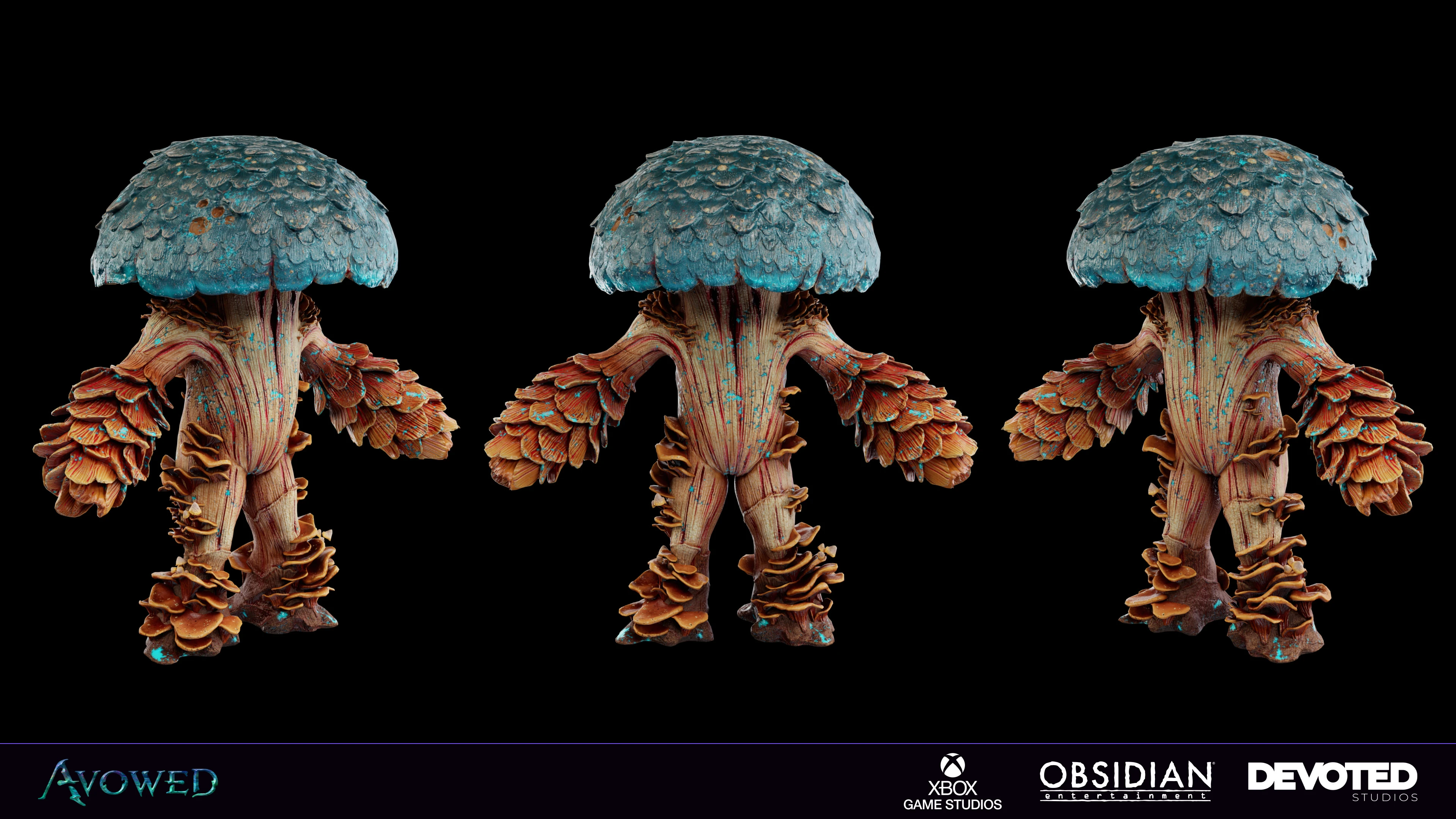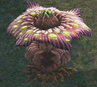 These giant mushrooms stand nearly as tall as adult aumaua with a broad and colorful cap. Their enormous weight is only held upright by the dozens of roots surrounding their base.