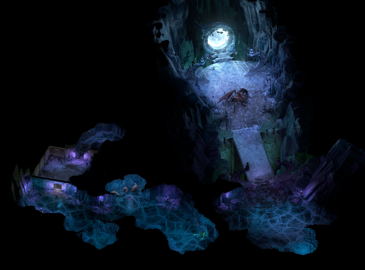 This was once the heart of the Rimebound Temple, now little more than ruins surrounding the Vydmath, a portal to Rymrgand's domain.