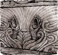 | 20014 | In the temple, I found a wall carving with two sockets. Each was the right size and shape to fit the cornett. | |