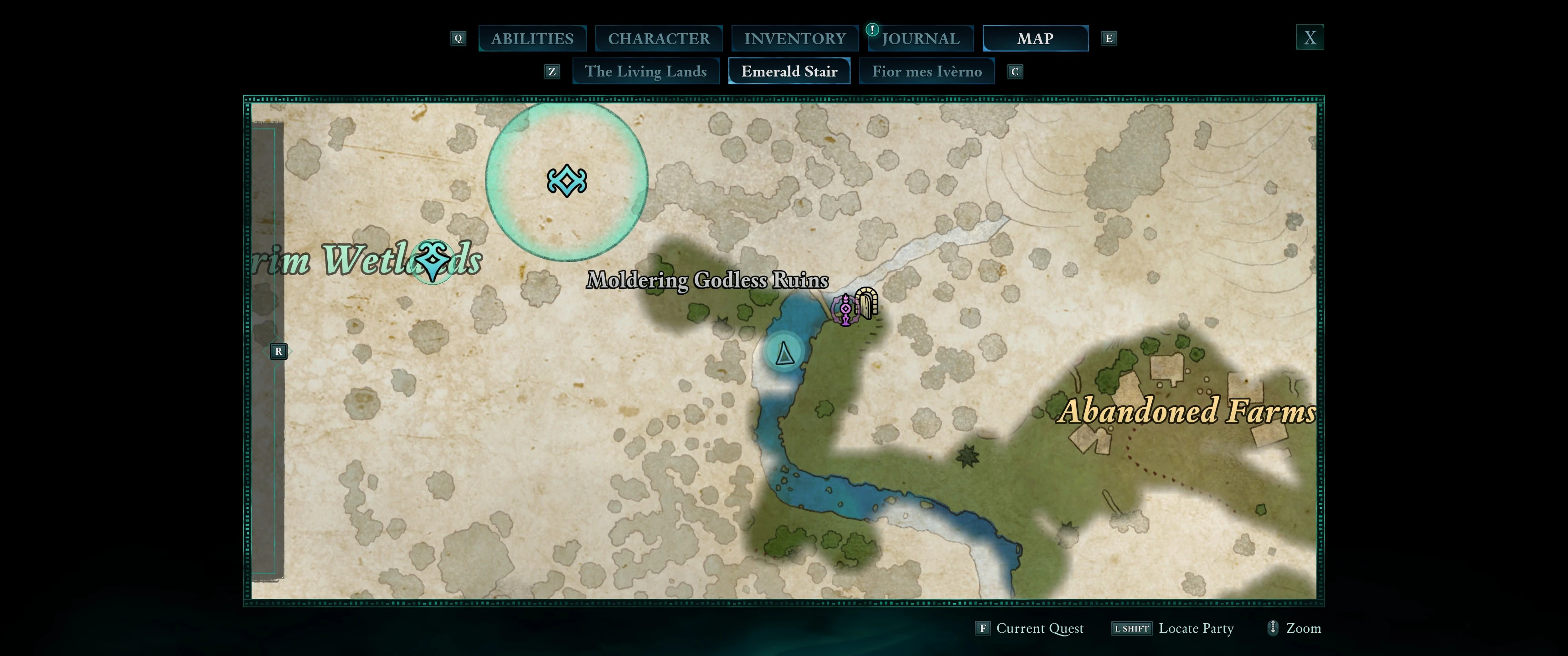 - Emerald Stair: in a lockbox on an island in the middle of the river east of Moldering Godless Ruins