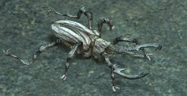 Despite all appearances to the contrary, there is an underlying complexity to the common beetle. When they choose a material with which to develop their shell, they do so with a level of intention that borders on artistry. Wood beetles will often burrow intricate holes in their carapaces. By blowing air through these makeshift pipes, they play an eerie music to attract mates. Stone beetles fashion rudimentary tusks and horns that help them to defend themselves and to attack prey. The intricacies of adra beetles are as of yet not well understood, save that they are notoriously difficult to kill.Encounters[]